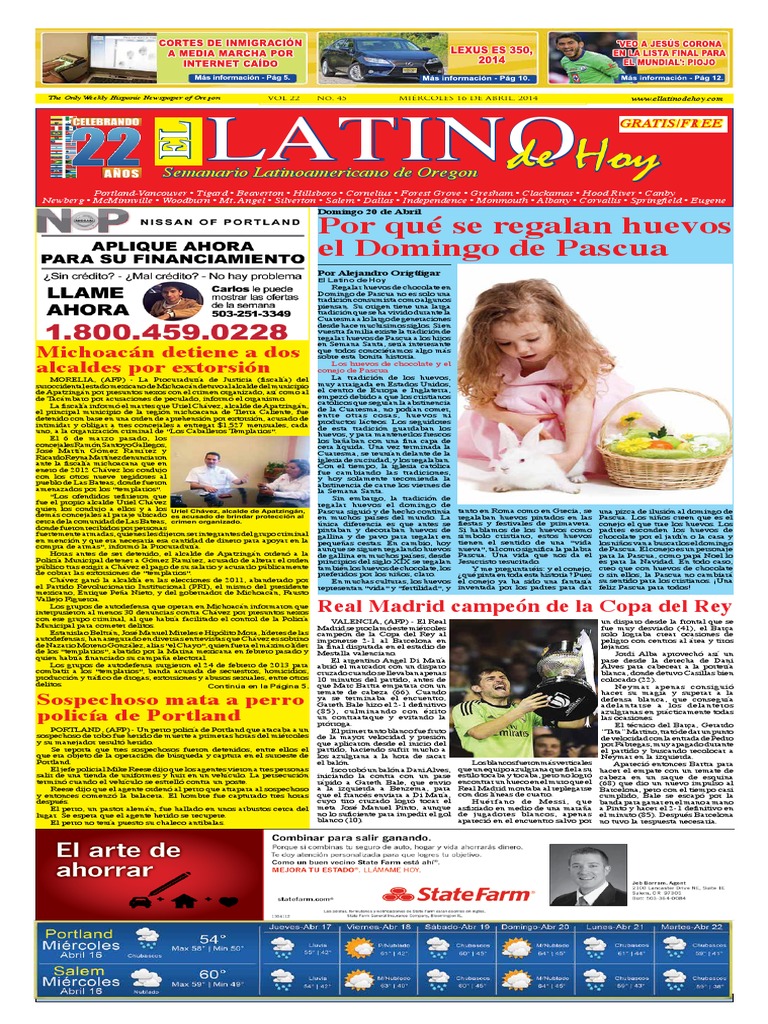 Vol 22 No 45 Miercoles 16 De Abril Latino De Hoy Semanario Latinoamericano De Oregon Pdf Free Download