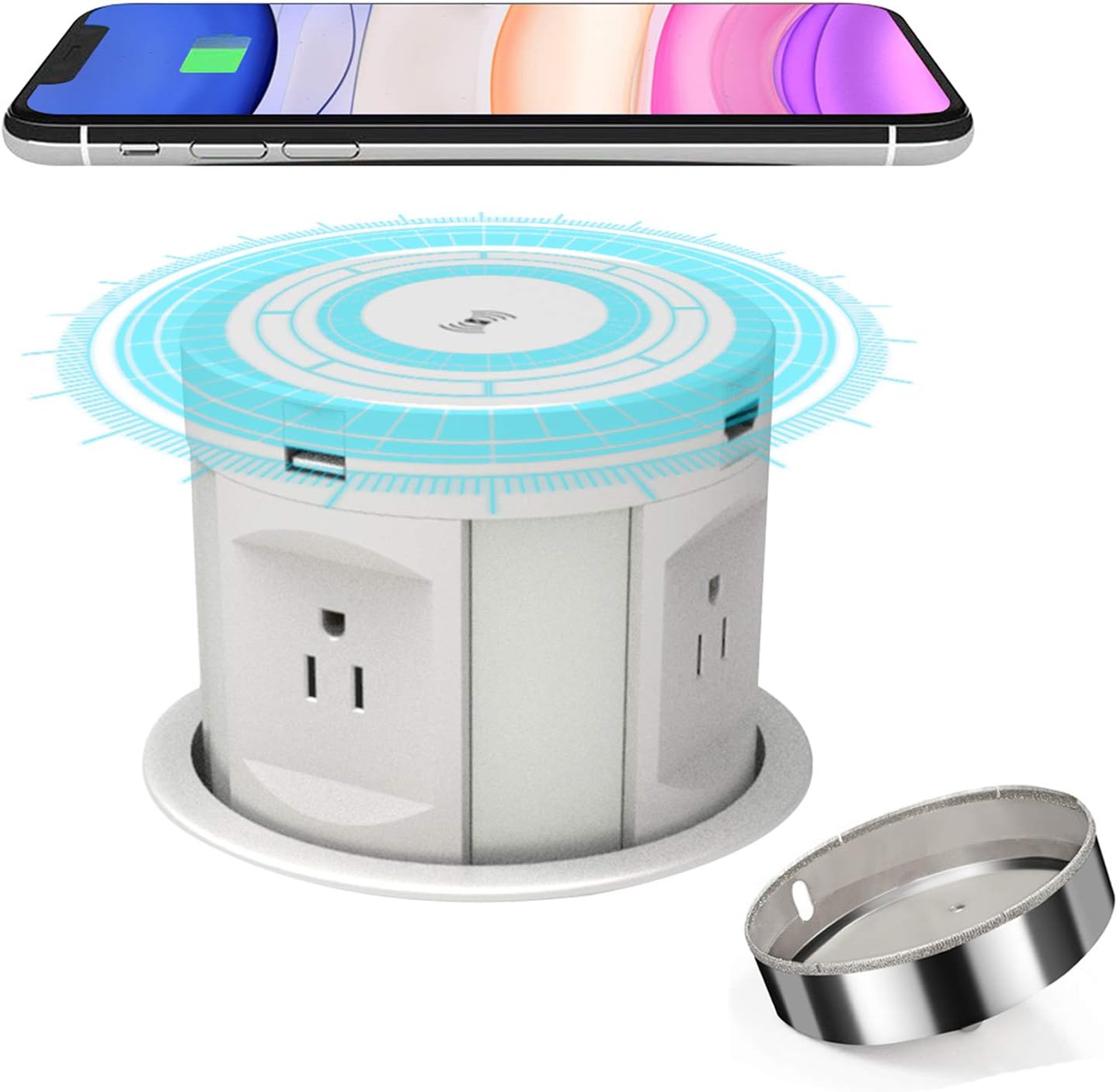 Amazon Com Pop Up Socket Desk Recessed Power Strip Kitchen Counter Automatic Pop Up Outlet With Phone Wireless Charger Station Surge Protector Hidden Pop Up Desktop Power Dock Electronics